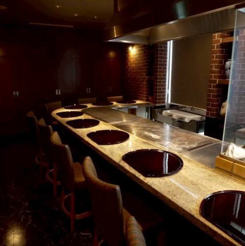 仕切り付きカウンター個室をご用意。10席ほどの程よい空間で、目の前の鉄板焼きの臨場感を楽しみつつ、落ち着いて商談や接待に最適。大切な方のおもてなしにも喜ばれる上質な時間をお届けします。